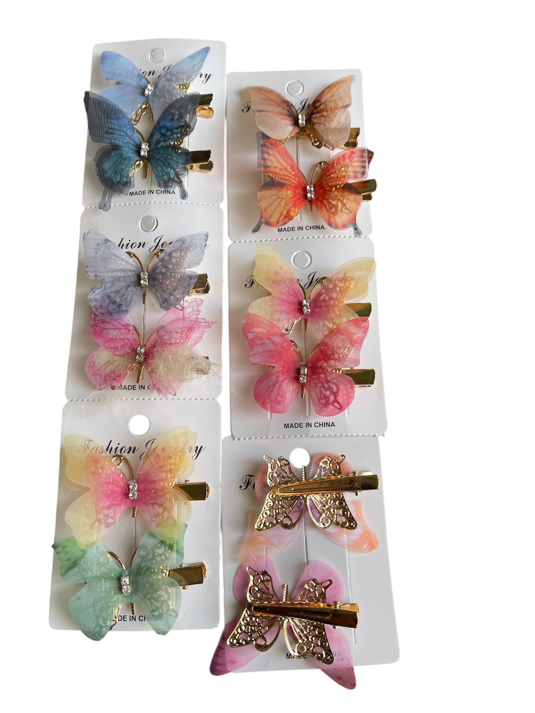 pack of 12 butterfly hair pins with alligator clips for easy hold.
