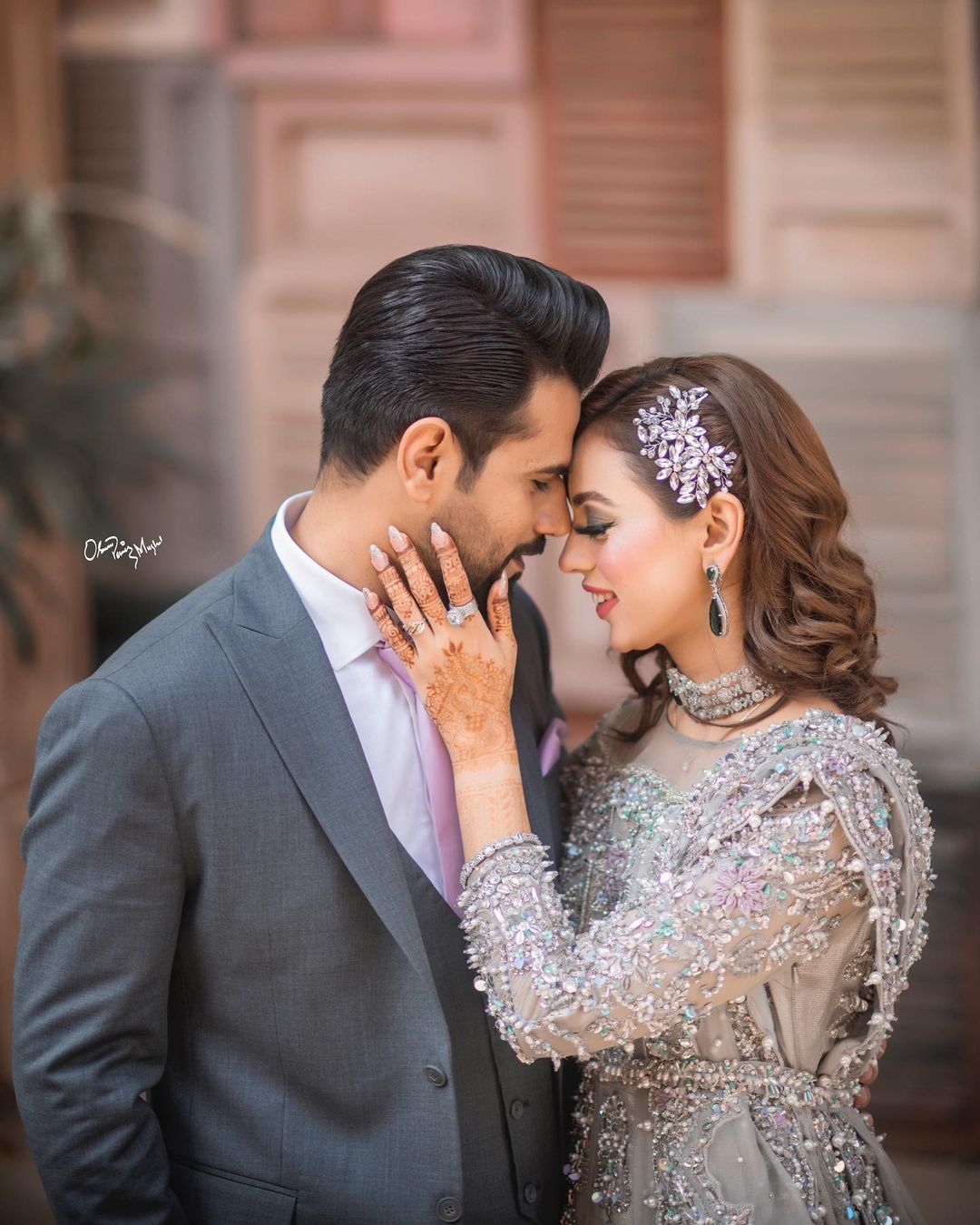 This handmade head piece, lovingly crafted with intricate silver rhinestones, will elevate any outfit with its dazzling design. Inspired by the actress Maryam Noor, this accessory exudes elegance and glamour. Shine bright and make a statement with Bubbly.