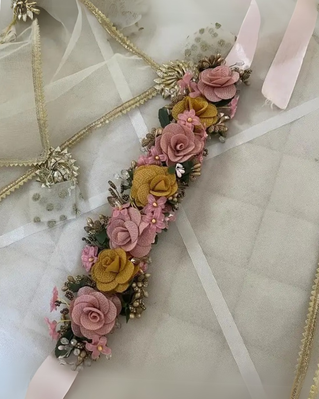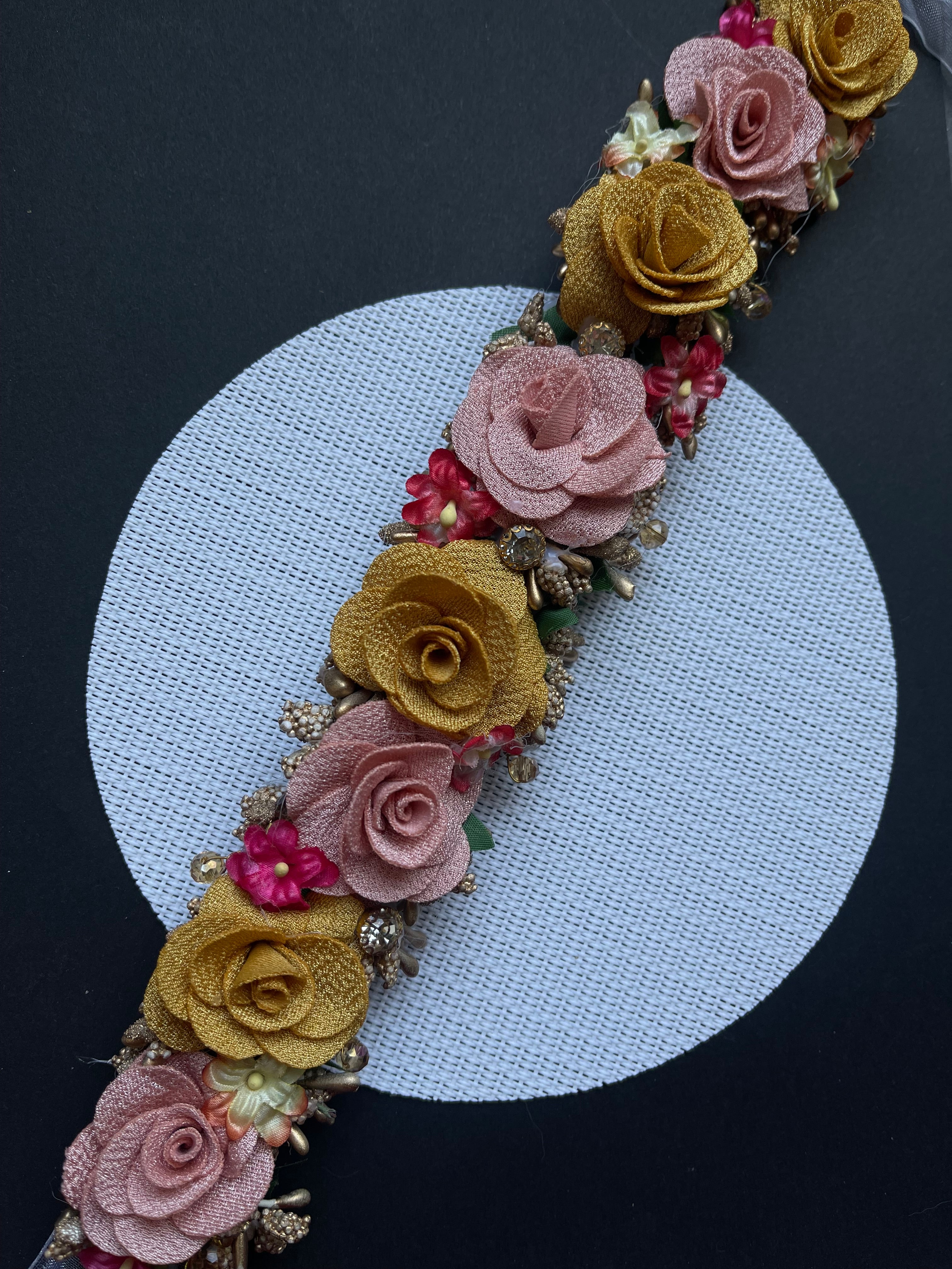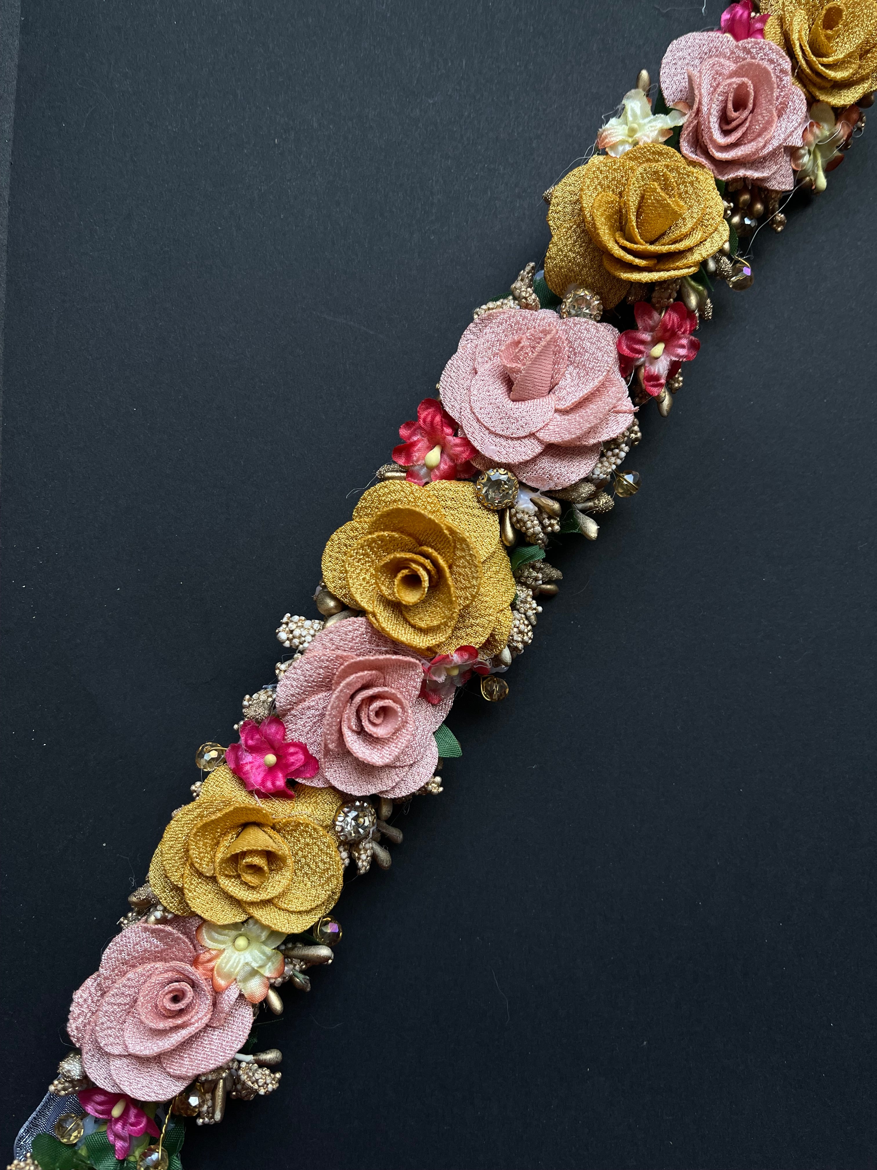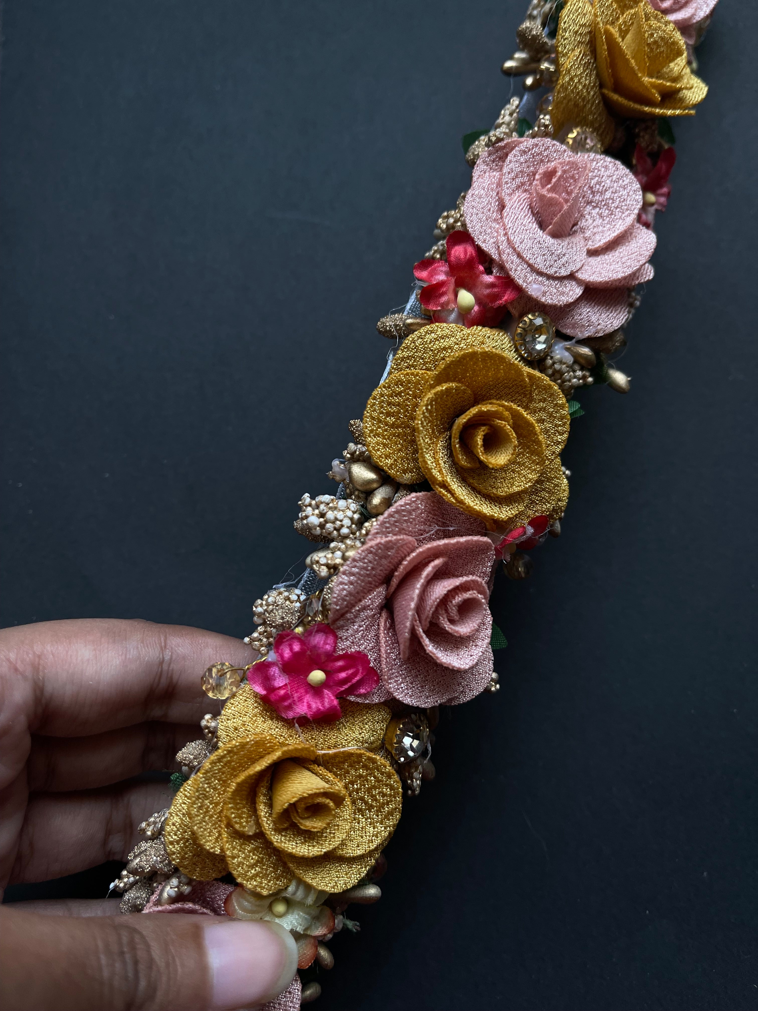 • Elegant Floral Design: Large-sized headpiece in a stunning pink and golden color with a multi-color pattern