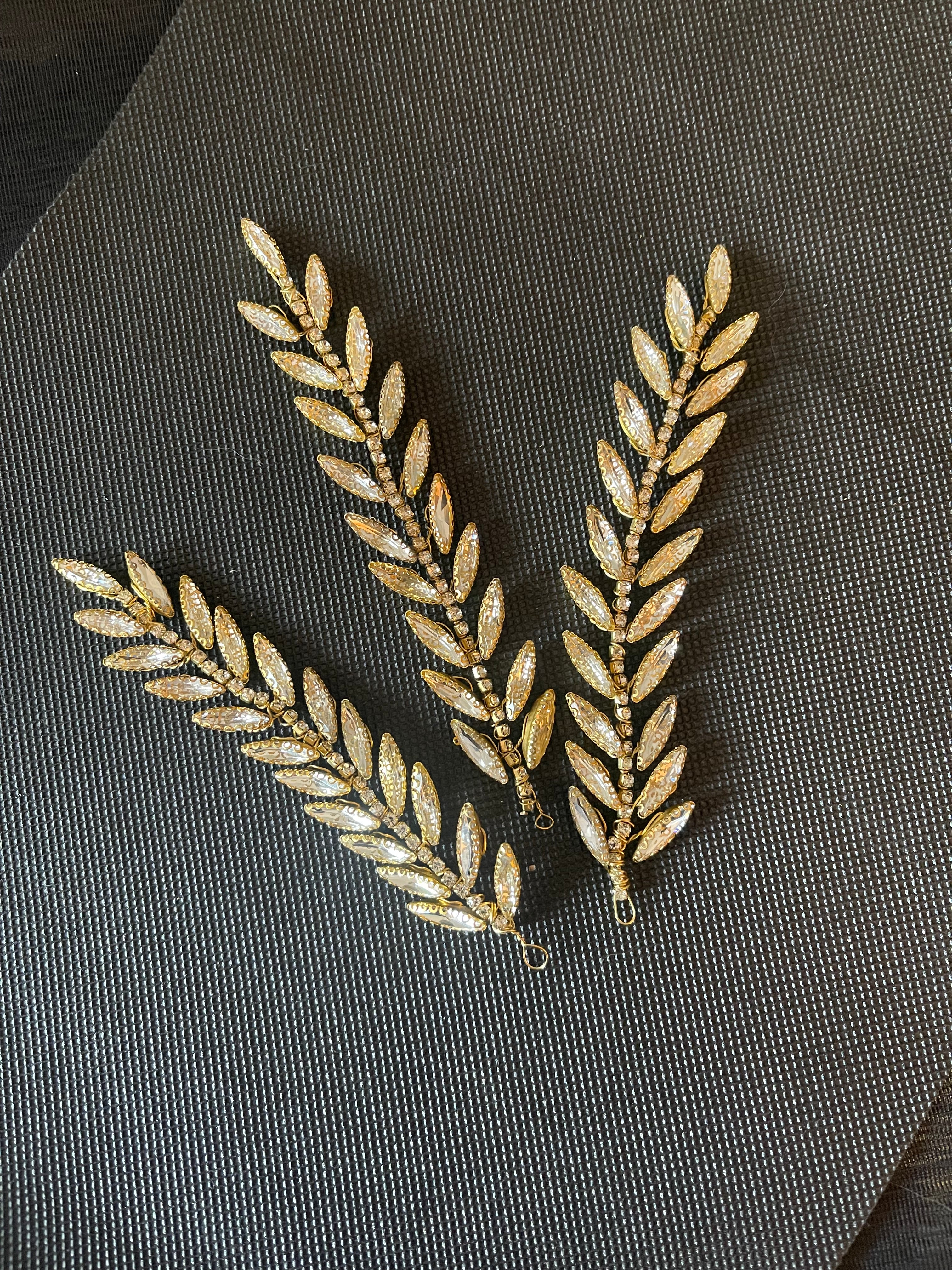 Brass wire, Rhinestones, Pearls and Crystals.