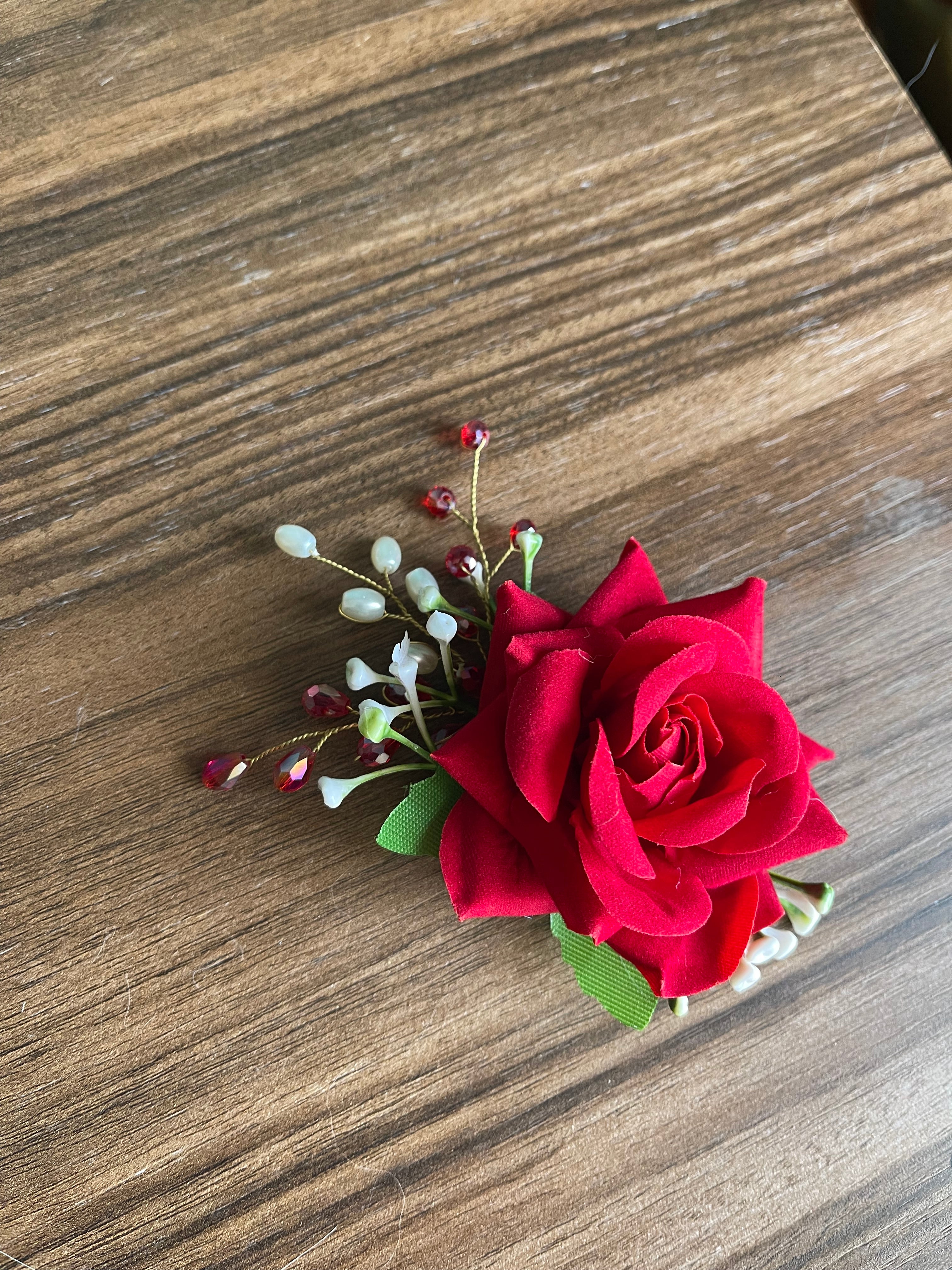 Handmade Hair Clip made of rose, pearls and rhinestones.