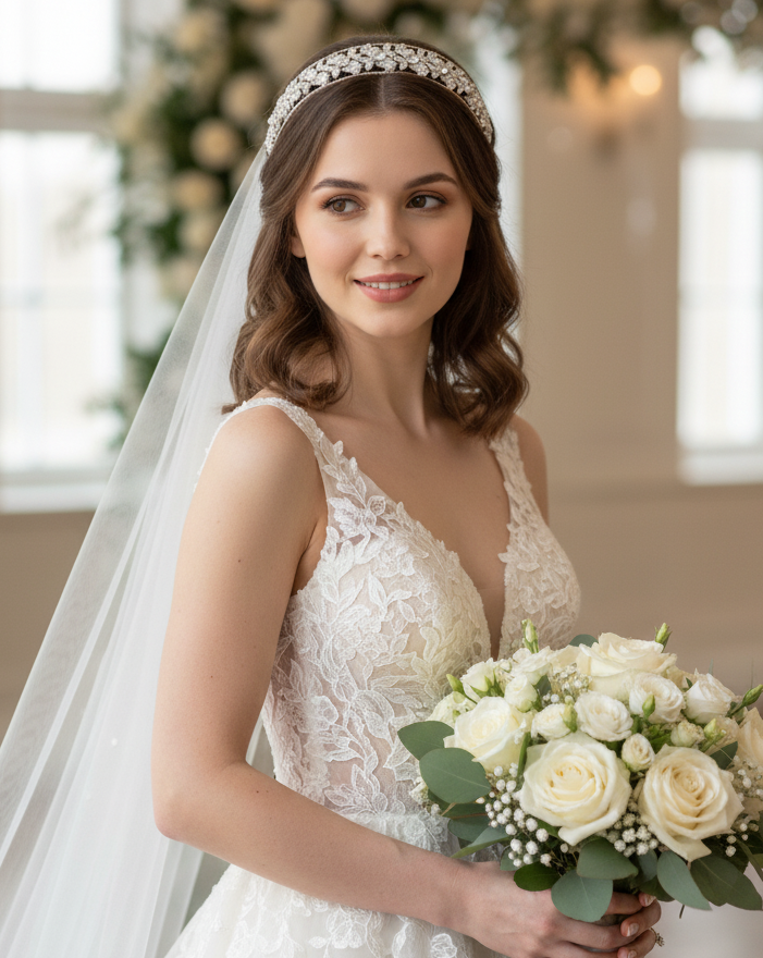 • Elegant Double-Band Design: Unique tiara-style shape adds regal height and dimension for a statement finish ✨