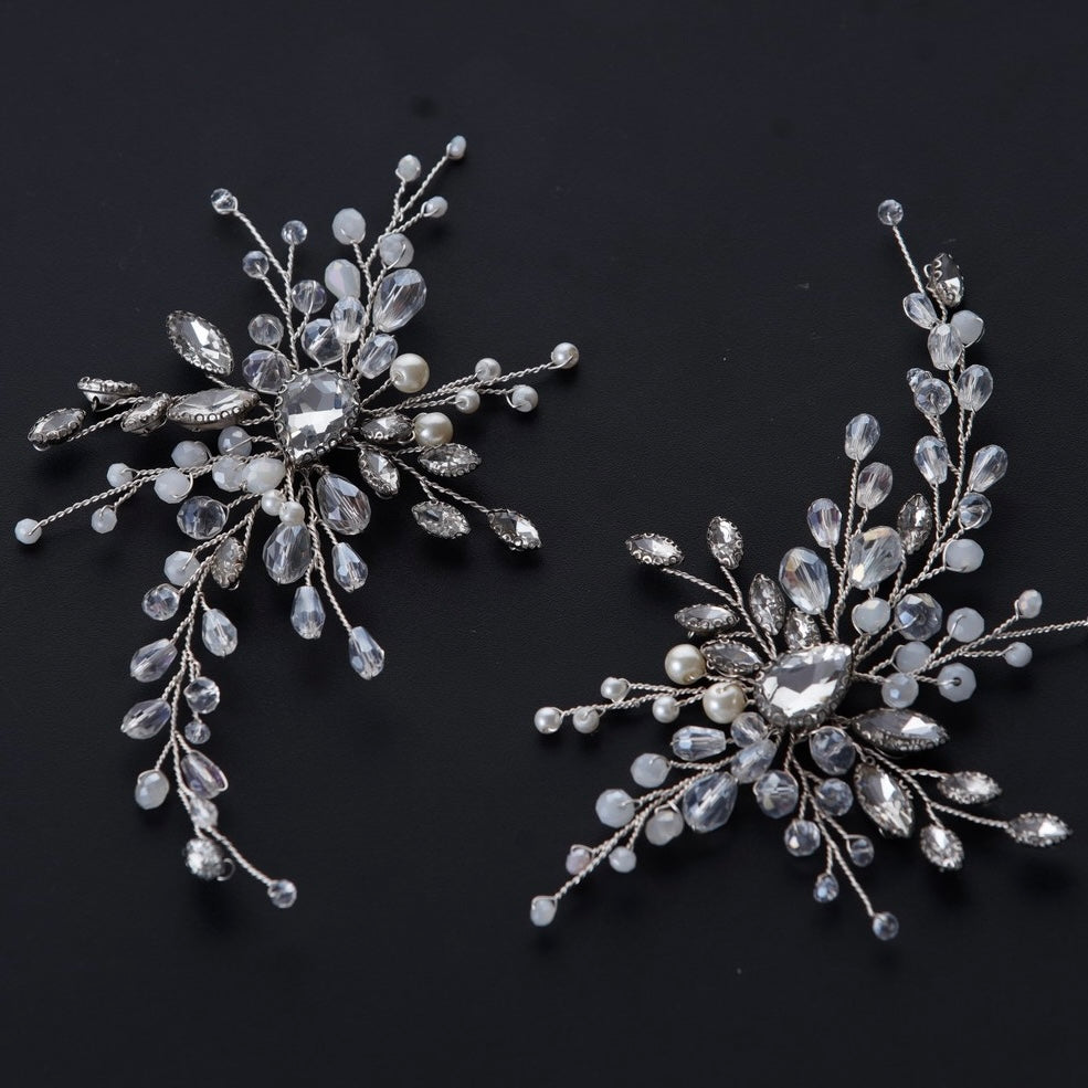 This Silverik head piece is crafted with stunning transparent crystals and silver rhinestones, creating a luxurious and elegant look. Adding this accessory will elevate any outfit and give a touch of glamour. The perfect choice for any formal occasion.